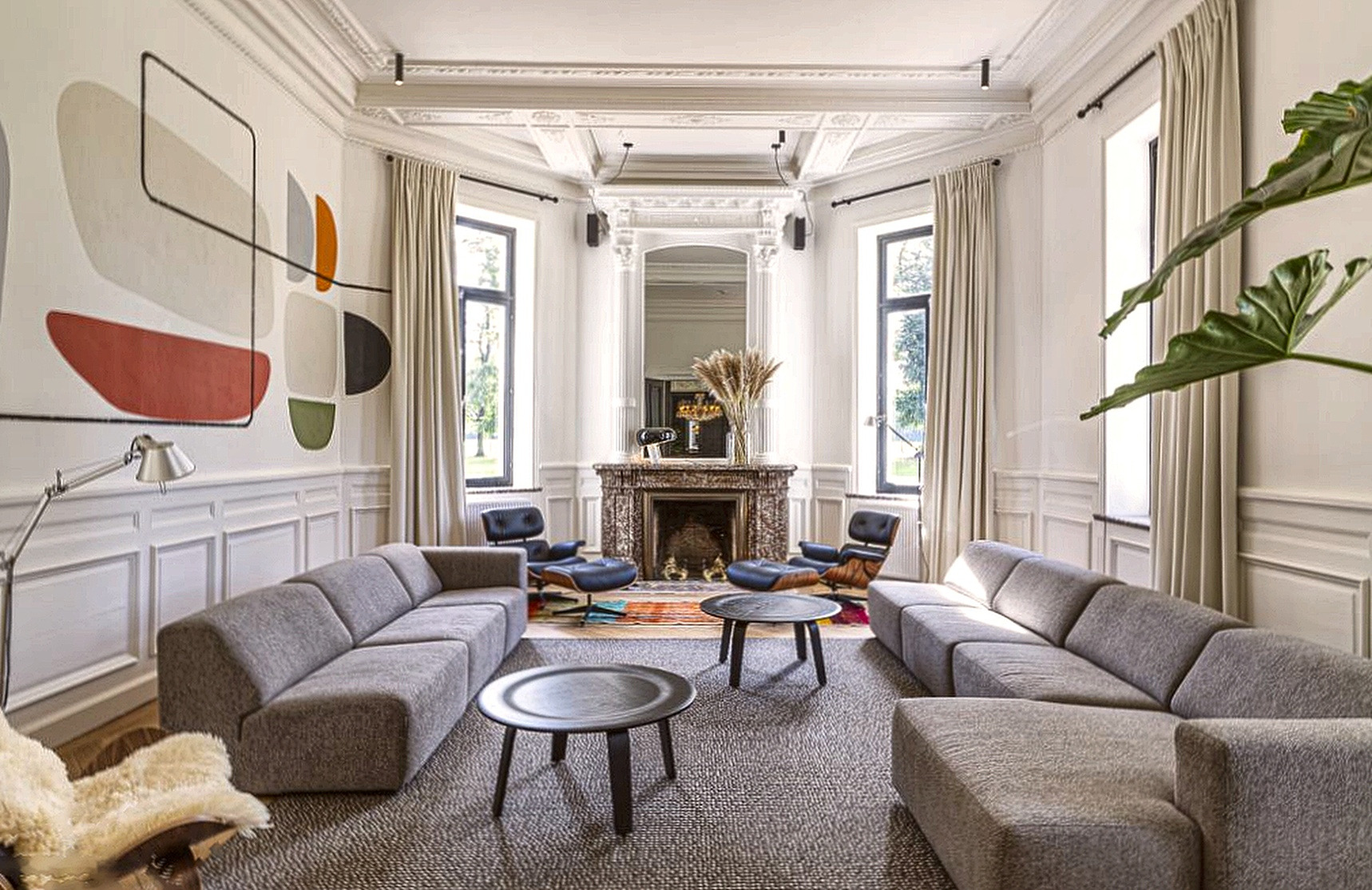 Le salon est l'espace de convivialité du château : on s'y retrouve pour lire, se détendre, et c'est là qu'ont lieu les conférences et certains ateliers.